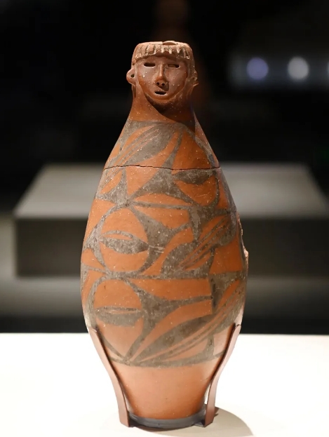 大地(di)灣出土的人(ren)頭形器口彩陶(tao)瓶。新華社(she)記(ji)者范培珅攝