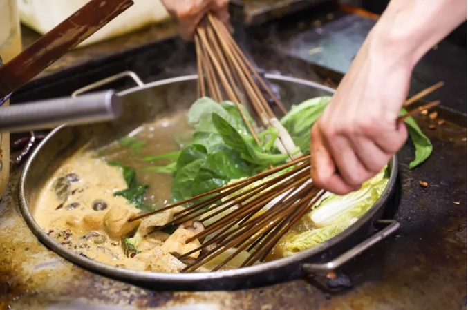 湯鍋(guo)翻滾,竹簽成把