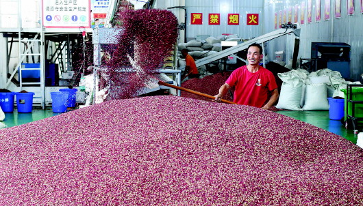 9月10日,甘谷花(hua)(hua)椒(jiao)(jiao)集散交易中心工人正(zheng)在(zai)加工收購的花(hua)(hua)椒(jiao)(jiao)。甘谷花(hua)(hua)椒(jiao)(jiao)種(zhong)植(zhi)歷(li)史悠久,所產花(hua)(hua)椒(jiao)(jiao)色澤鮮紅、粒大肉厚、麻(ma)味悠長、清香濃郁,是(shi)國內(nei)紅花(hua)(hua)椒(jiao)(jiao)中的精品。目前,全縣花(hua)(hua)椒(jiao)(jiao)種(zhong)植(zhi)面積22萬(wan)畝,預計年產量1.6萬(wan)噸以上(shang),產值(zhi)11.5億(yi)元以上(shang),花(hua)(hua)椒(jiao)(jiao)樹真正(zheng)變成了群眾致(zhi)富的“搖錢樹”。 新天水·天水日報記(ji)者李(li)旺旺攝