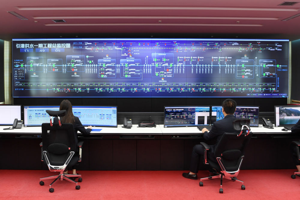 這(zhe)是(shi)2021年9月(yue)6日在甘肅省引洮工(gong)程(cheng)水(shui)資(zi)源利用中心調度中心拍攝的引洮供水(shui)一期(qi)工(gong)程(cheng)調度現場。新華社記(ji)者范培(pei)珅(shen)攝
