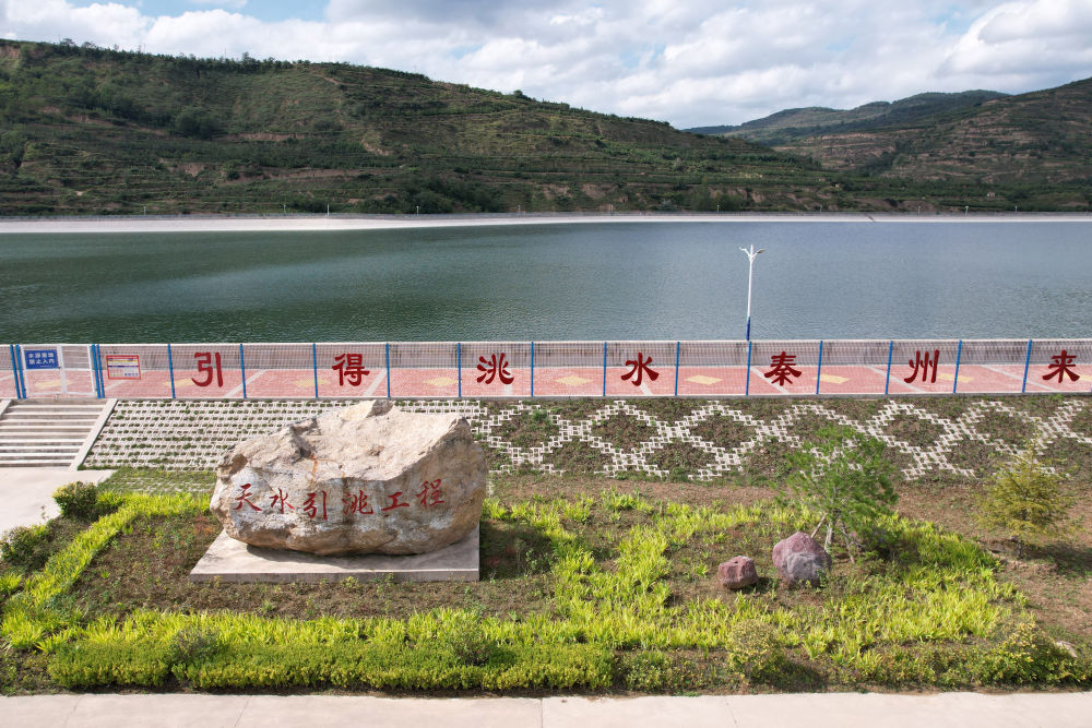 這(zhe)是近日在(zai)天水(shui)(shui)市秦州(zhou)區(qu)拍攝的天水(shui)(shui)市城(cheng)區(qu)引洮供水(shui)(shui)工程楊家(jia)灣(wan)調蓄水(shui)(shui)池(無人機照片)。新華社(she)記(ji)者范培珅攝