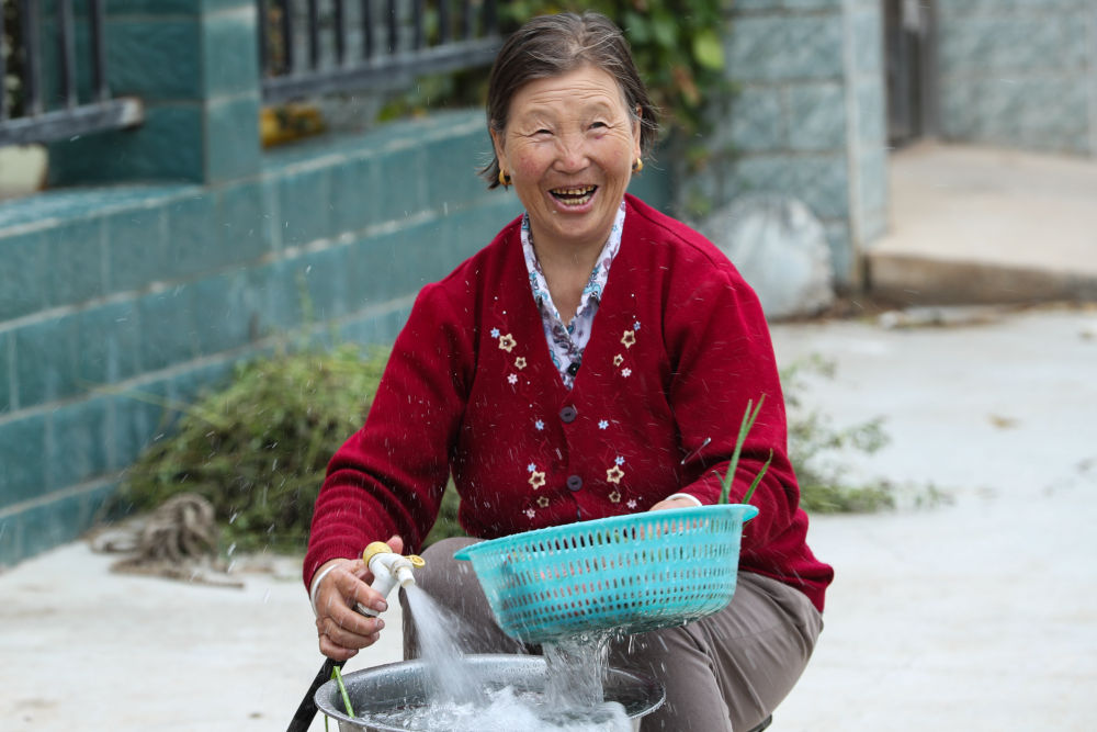 近(jin)日,在定西(xi)市隴西(xi)縣雙(shuang)泉鎮癿羊口村,68歲的村民何(he)淑(shu)蘭用引(yin)洮工程引(yin)來(lai)的自來(lai)水洗菜。新華社記者郎(lang)兵兵攝