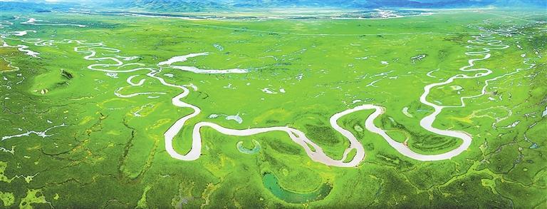 一彎碧水潤(run)草原。九月的(de)阿萬(wan)倉,雄(xiong)渾(hun)遼闊。極目遠眺,廣袤的(de)草原,像一塊巨型的(de)綠色地毯鋪(pu)展開(kai)來。濕地平(ping)緩,黃河在此(ci)迂回,形成溪(xi)流(liu)、匯為(wei)湖泊,星羅棋(qi)布,美輪美奐。