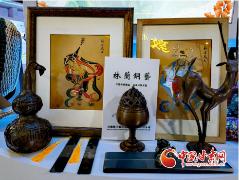 在甘肅館內的林(lin)蘭銅(tong)藝(yi)展(zhan)區,白(bai)銀林(lin)蘭銅(tong)藝(yi)文化發展(zhan)有限(xian)公司負(fu)責人馬艷萍一(yi)(yi)邊(bian)向觀(guan)展(zhan)賓(bin)客(ke)介(jie)紹自(zi)(zi)己的產品,一(yi)(yi)邊(bian)向大家推介(jie)自(zi)(zi)己的家鄉—甘肅省白(bai)銀市。