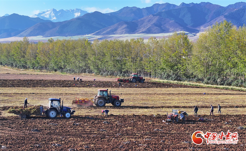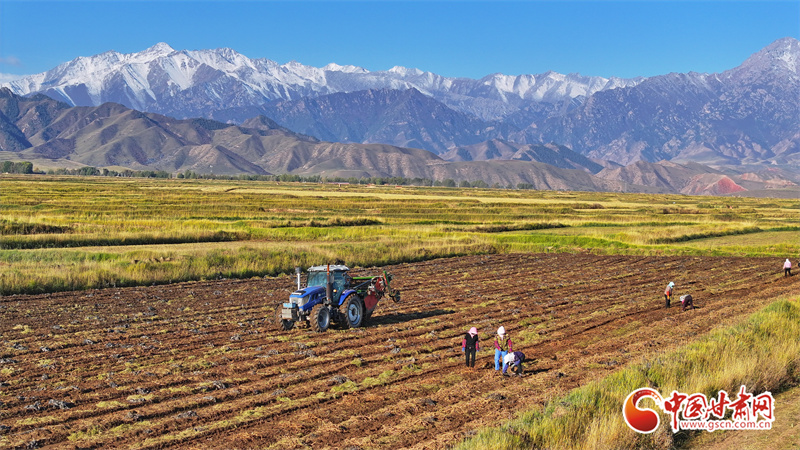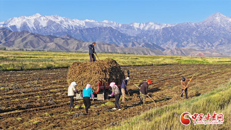 10月7日,位于祁連(lian)山(shan)腳下的張掖市民樂縣南豐(feng)鎮張連(lian)莊村的千(qian)畝黃(huang)芪(qi)種植(zhi)基地,藥農(nong)們忙著采收(shou)黃(huang)芪(qi),田間地頭(tou)一派豐(feng)收(shou)的繁忙景象(xiang)。