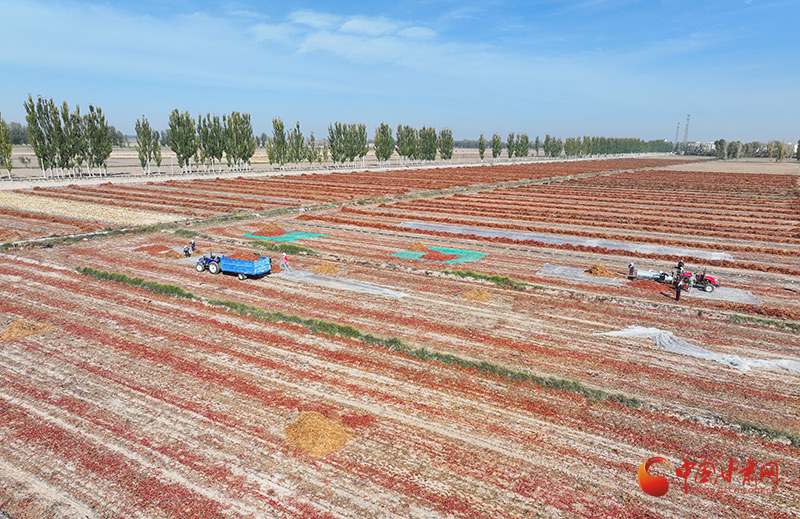 “我們種植(zhi)的辣(la)椒(jiao)品種主要是朝天(tian)椒(jiao),成熟后(hou)需要先(xian)割倒擺放(fang)在壟溝上晾曬,一(yi)方面是辣(la)椒(jiao)干透后(hou)機械脫(tuo)粒,另一(yi)方面也(ye)是為了防霜(shuang)凍。這些(xie)朝天(tian)椒(jiao)都是訂單辣(la)椒(jiao),等過幾(ji)天(tian)曬好后(hou)由企業統(tong)一(yi)收購(gou),直接運(yun)走,每(mei)畝(mu)產量500公斤左右,每(mei)畝(mu)收益能達到5000元以上。”種植(zhi)大戶韓克紅說。
