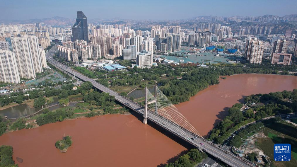 這是黃河蘭(lan)州(zhou)段兩(liang)岸景色(9月23日攝,無人機照片)。新(xin)華(hua)社(she)記者陳(chen)斌攝