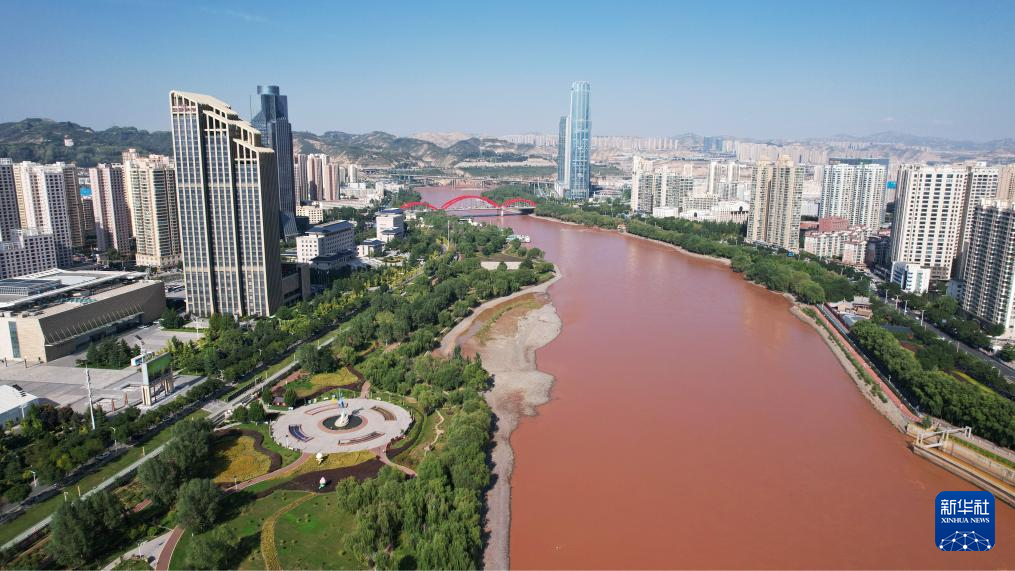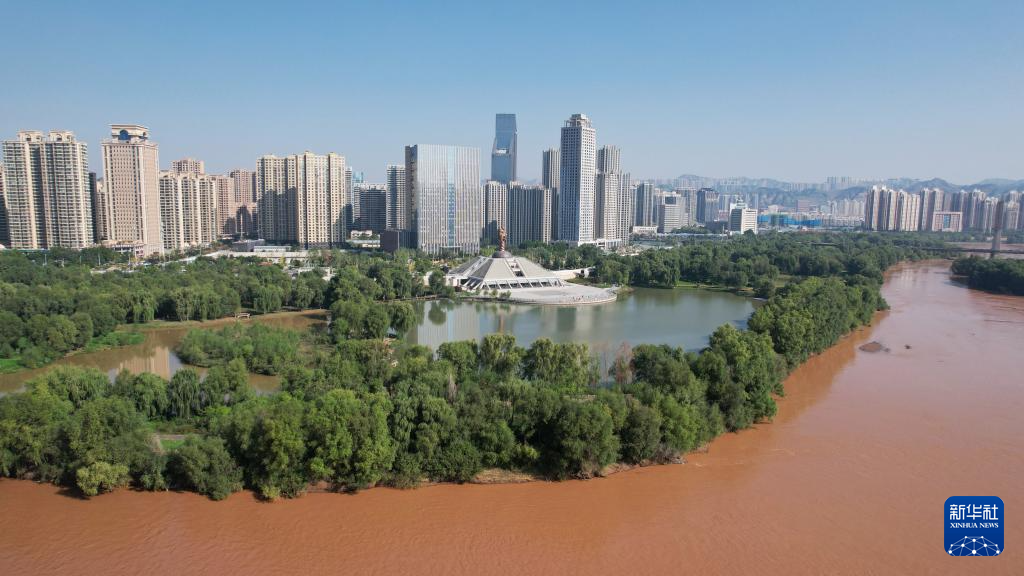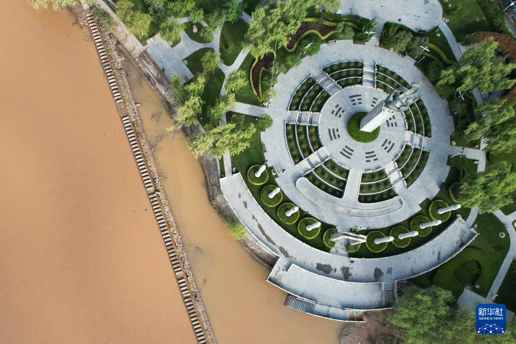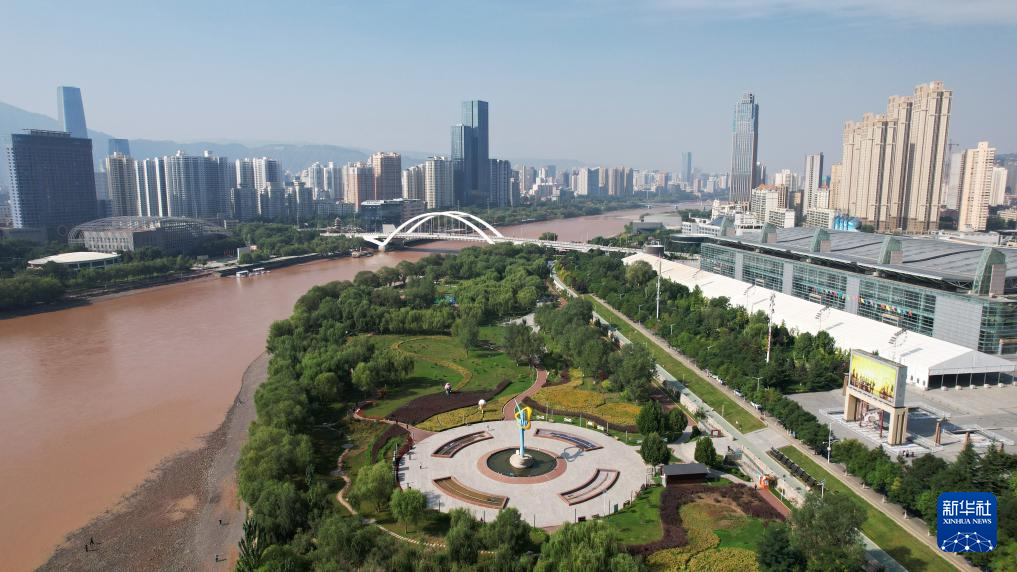 這是位于黃(huang)河蘭(lan)州段北岸的龍源(yuan)公(gong)園(9月25日攝,無人機照(zhao)片)。新華社記者陳斌攝