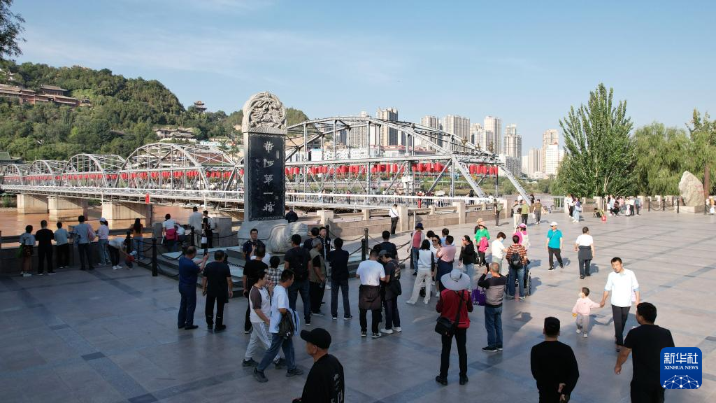 游客在蘭州地標——中山(shan)橋(qiao)參觀游覽(9月23日攝(she),無人機照片)。新華社記者陳斌攝(she)