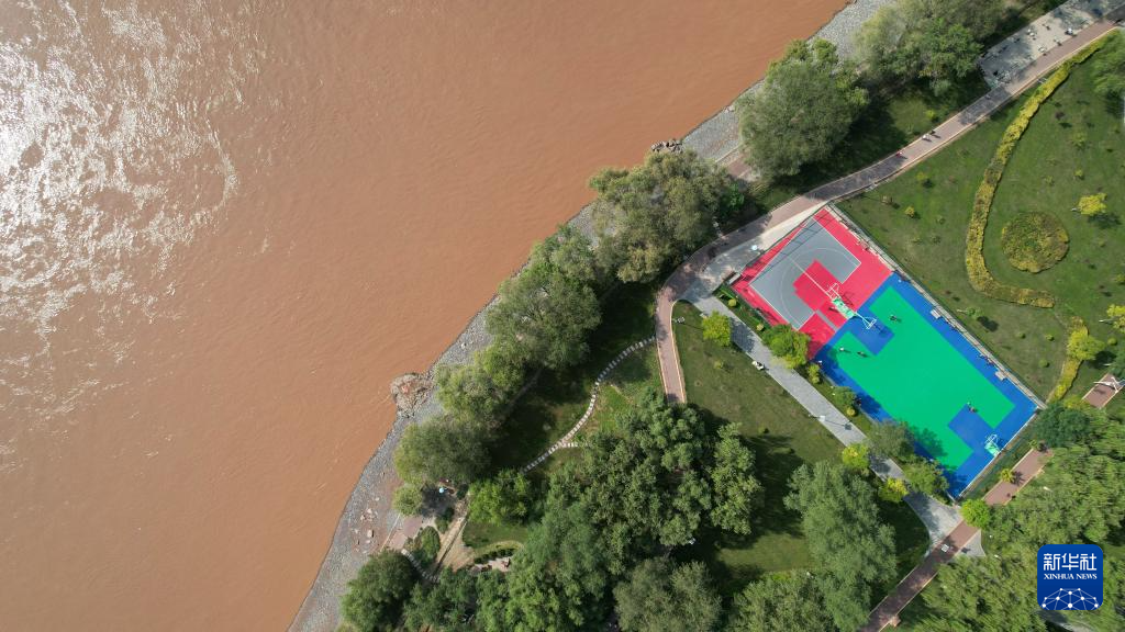 這是位于蘭州(zhou)市城關區黃河北岸的蘭州(zhou)馬拉松公園一處籃球場(9月24日攝(she),無人機照片)。新華社記者陳(chen)斌(bin)攝(she)