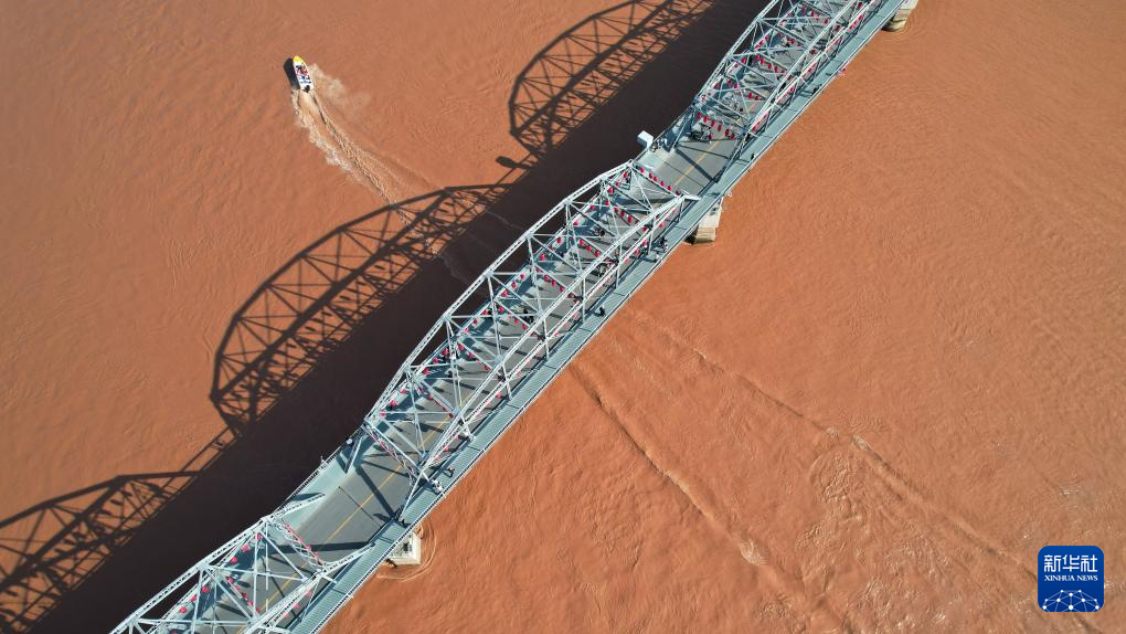 一艘快艇從黃河蘭州(zhou)段中山橋下駛過(9月23日攝(she),無人機(ji)照(zhao)片)。新華社(she)記者陳斌攝(she)