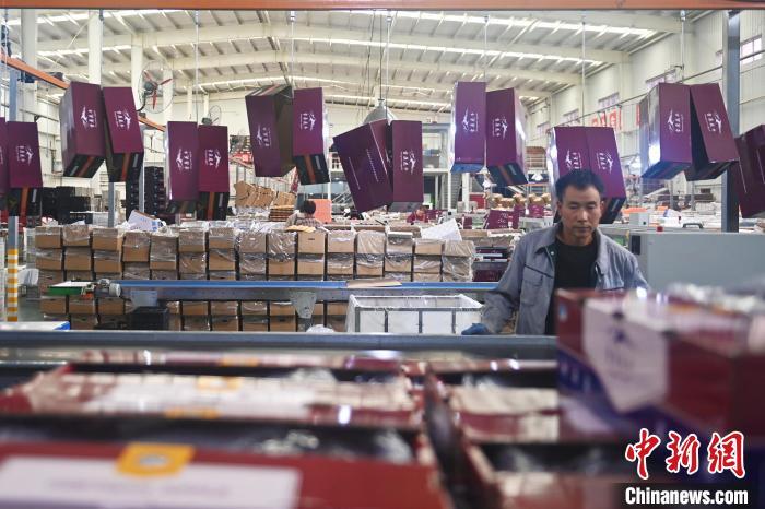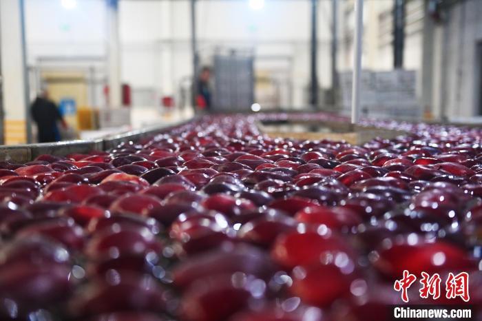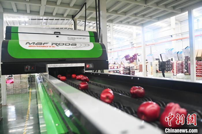 10月21日,在甘肅省(sheng)天(tian)水市秦安縣雪原果品有限公司(si)加工車間,蘋果自動化分揀線(xian)正在運行。中(zhong)新社記(ji)者李亞龍攝