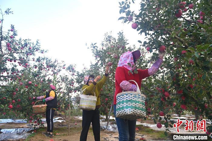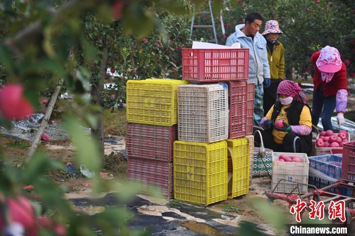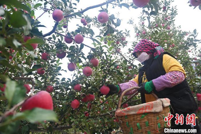 10月21日(ri),在甘肅(su)省天水市秦安縣(xian)一果園內,果農進行蘋(pin)果采收工作。中新(xin)社記者李亞龍攝(she)