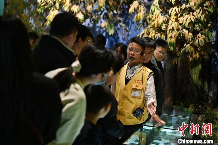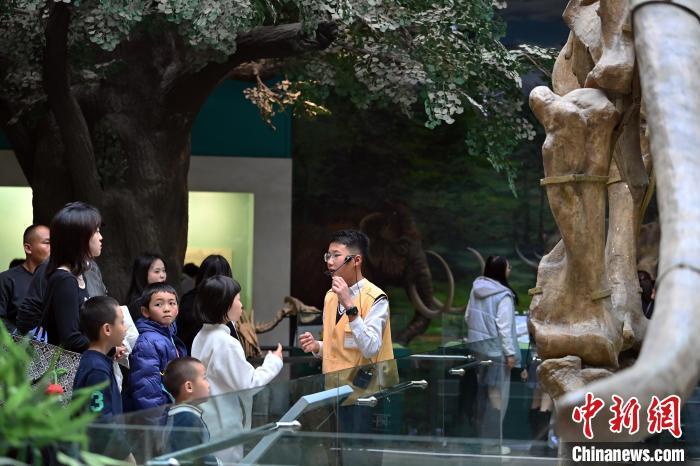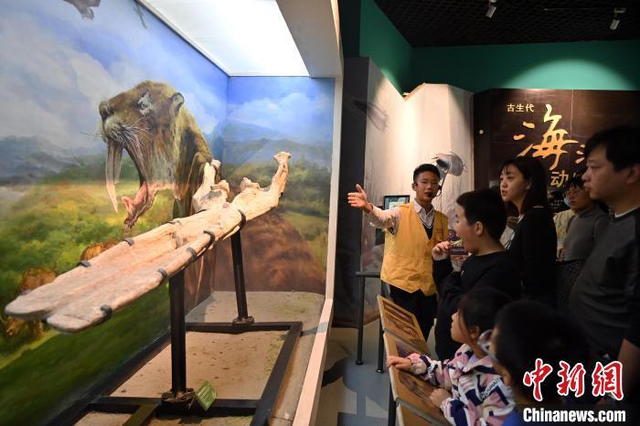 11月16日,正值周末,14歲的少年講解員侯澤磊在甘肅省(sheng)博物館古生物化石展廳為游客講解。中新社(she)記者 九美旦增 攝(she)