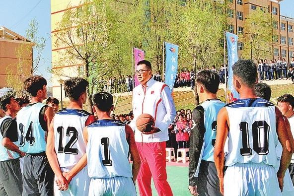 男籃前國(guo)手張兆旭在積石山(shan)與(yu)學生互動交流。