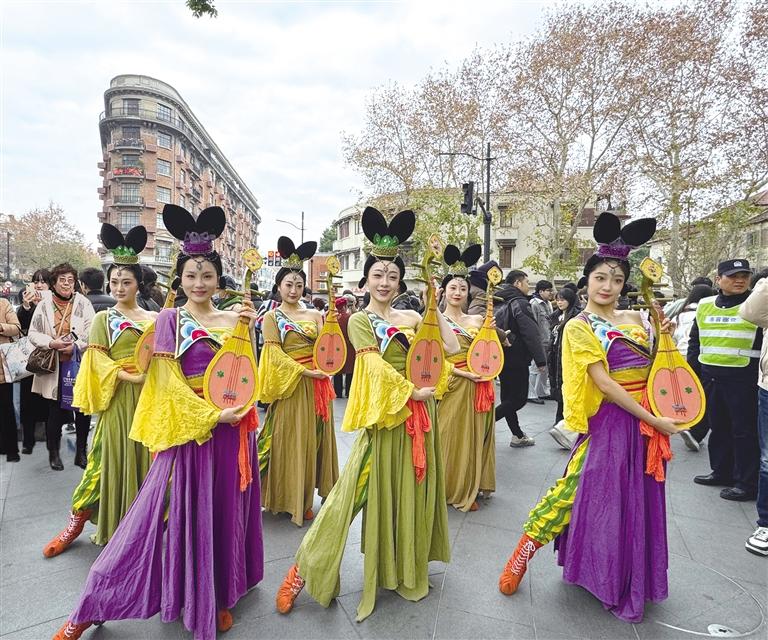 來到武(wu)康路(lu),快閃活(huo)動(dong)更(geng)增添了一(yi)份文藝氣息。演(yan)員(yuan)們在(zai)充滿歷史韻味的(de)街(jie)道(dao)上(shang)翩翩起舞,與周圍的(de)老(lao)建筑相(xiang)得益(yi)彰(zhang)。游客(ke)們被(bei)這獨特的(de)場(chang)景所吸引,紛(fen)紛(fen)圍觀(guan),許多外國游客(ke)禁(jin)不(bu)住豎起大(da)拇(mu)指,詢問演(yan)員(yuan)們來自哪里,并(bing)主動(dong)請求(qiu)與演(yan)員(yuan)們合影。