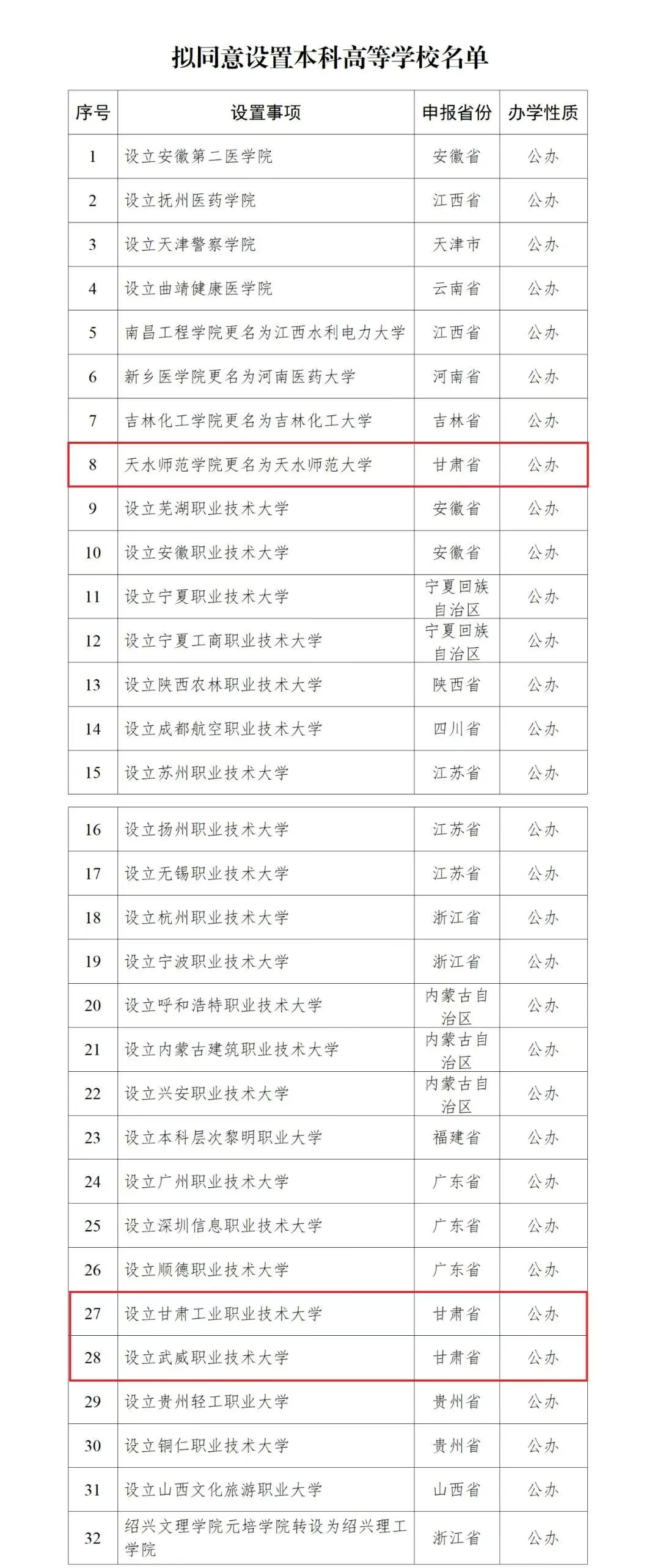 甘肅3所!教育部擬同意設置32所本科高等學校