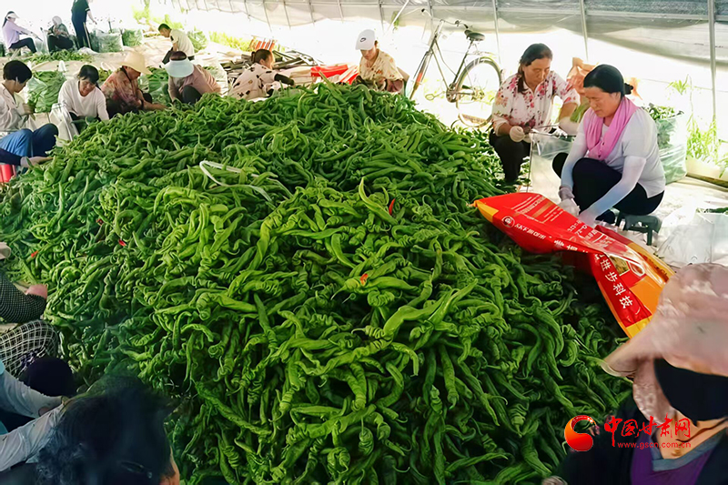 晨霧未散,涇(jing)川縣玉都鎮下坳村設施蔬菜(cai)園(yuan)區的鋼架大(da)棚已透出微光,雨后濕(shi)熱(re)氣息裹挾著濃郁(yu)椒香撲面而來,一個個鮮綠的青椒綴滿(man)了(le)藤(teng)蔓。村民(min)們穿梭其間,采摘(zhai)、分揀、打(da)包,一派繁忙的豐收景象(xiang)。