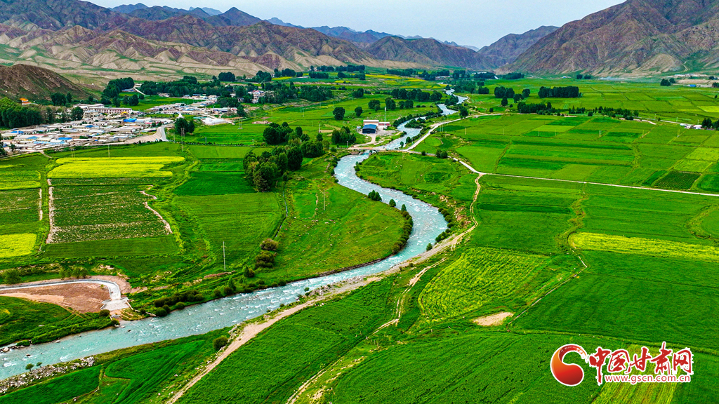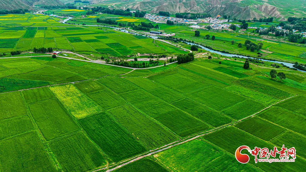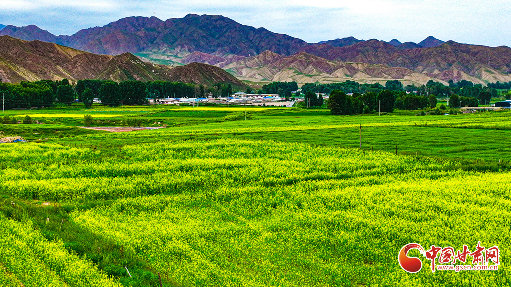 7月14日,一場(chang)小雨過后,張掖市肅南裕(yu)固族自治縣皇城鎮泱翔(xiang)片區(qu),萬(wan)畝麥田泛黃、油(you)菜花(hua)盛開如金。微風吹拂,麥浪翻涌花(hua)香浮動。遠眺祁(qi)連山巍峨(e)聳(song)立,近觀(guan)民(min)居(ju)錯落(luo)有致,構成一幅和諧的(de)畫(hua)卷(juan)。