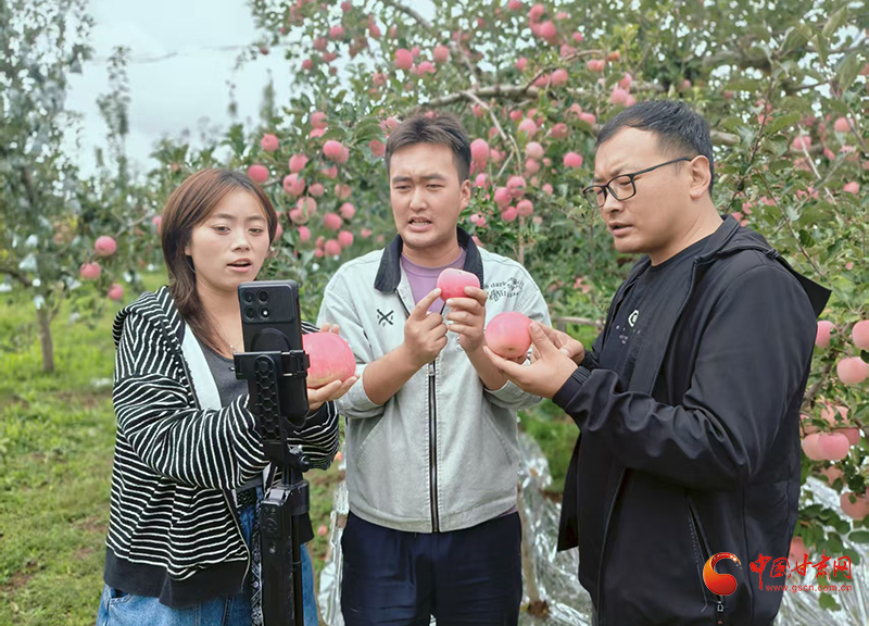 果園里,團隊又(you)開始(shi)了新一輪(lun)直播,年(nian)輕主播手捧一顆(ke)嘎啦蘋(pin)果仔(zi)細講解,后臺訂單提示音此(ci)起彼伏。