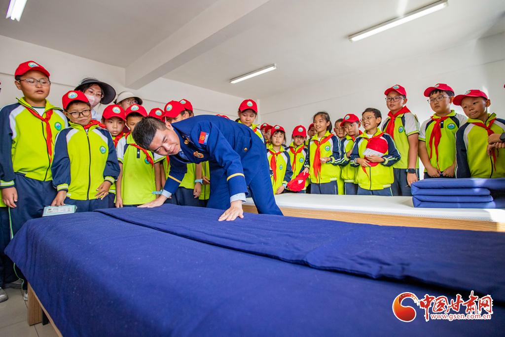 消防(fang)隊員(yuan)正在為師生們展示內務整理