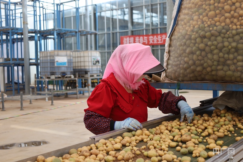 工人正在挑揀馬鈴薯原原種(央(yang)廣網記者 魏(wei)晉雪 攝)