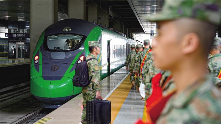 為(wei)確(que)保此(ci)次新兵運輸(shu)任(ren)務安全(quan)、高效、有序完(wan)成(cheng),國鐵蘭(lan)州(zhou)局蘭(lan)州(zhou)車(che)站(zhan)制定(ding)詳盡(jin)周密的運輸(shu)組織方案和應急預案,開辟了軍人依(yi)法(fa)優先(xian)綠色通(tong)道,設置專用(yong)候車(che)區和集結地點,為(wei)新兵提供從進站(zhan)、候車(che)到登車(che)的全(quan)流(liu)程便(bian)捷服(fu)務。由退伍老(lao)兵組成(cheng)黨(dang)員(yuan)服(fu)務隊,配(pei)備(bei)藥箱、針線盒(he)、充(chong)電(dian)器等物品,提供引導咨詢(xun)、行李搬運、便(bian)捷中轉等保障(zhang)服(fu)務,確(que)保新兵隊伍高效通(tong)過。