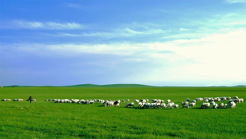 繞(rao)過(guo)大(da)山,大(da)地如一(yi)(yi)張折疊著的紙被突(tu)然(ran)展(zhan)平。眼(yan)前變得(de)開闊了(le)。一(yi)(yi)只鷹從(cong)公路(lu)的一(yi)(yi)邊滑(hua)翔到另一(yi)(yi)邊,當它從(cong)車頂上(shang)飛(fei)過(guo)時,整個貢格(ge)爾草(cao)原(yuan)都慢了(le)下來。風舒緩地吹皺了(le)貢格(ge)爾河的河水,牛羊在(zai)路(lu)兩(liang)旁(pang)悠(you)閑地散步。為(wei)了(le)能及時躲避進(jin)入公路(lu)的牛羊,車子(zi)明顯放慢了(le)速(su)度。我的心(xin)恨不得(de)插上(shang)翅膀,和剛剛飛(fei)過(guo)車頂的雄(xiong)鷹一(yi)(yi)樣,好好看看這(zhe)遼闊的草(cao)原(yuan)。
