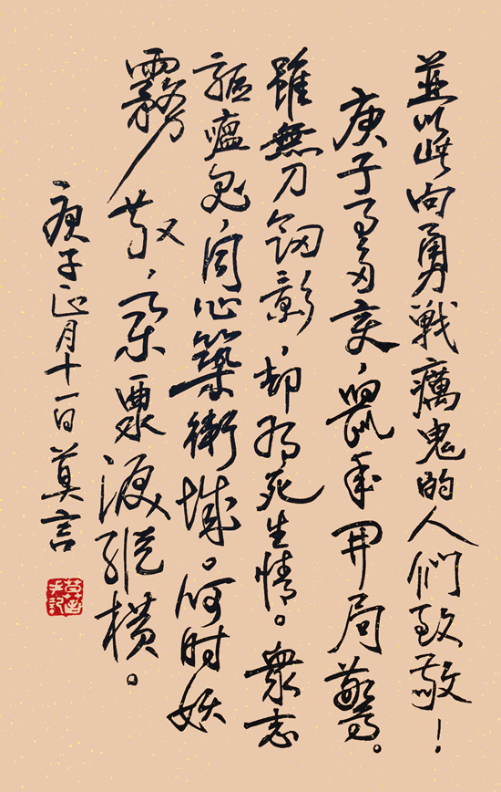 “同心驅癘鬼,眾志筑長城” 莫言 作