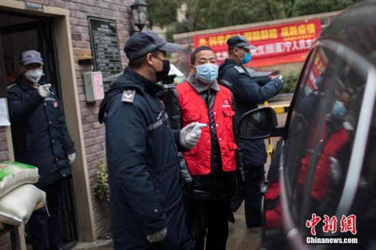 資料圖:社區(qu)工作人員和物業保安(an)對(dui)(dui)進出車輛進行核實和對(dui)(dui)駕乘人員測量(liang)體溫。泱波 攝