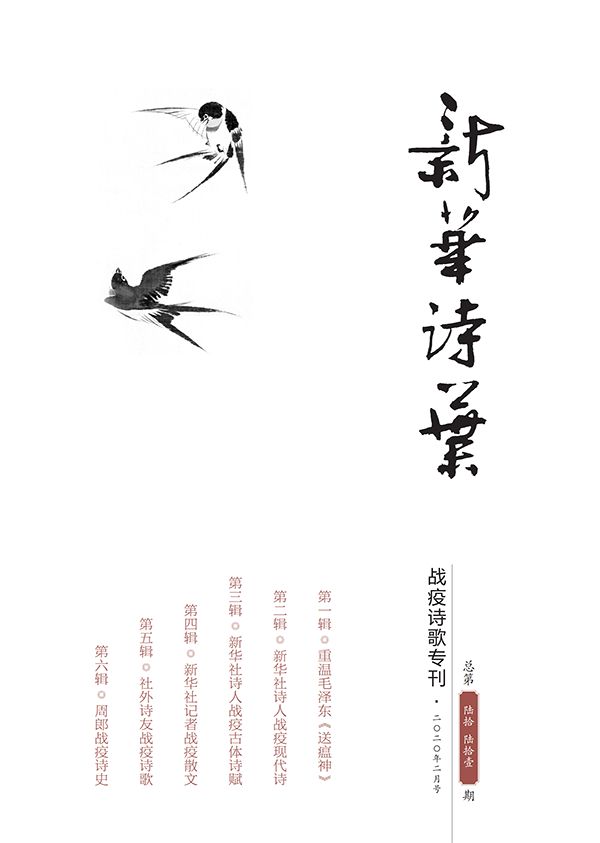 《戰疫(yi)(yi)詩(shi)歌專(zhuan)刊(kan)(kan)》是在新華(hua)社(she)(she)原副(fu)社(she)(she)長何(he)東君(jun),原社(she)(she)黨組成員、秘書長張錦的(de)(de)共同倡議策劃和組織指揮下,在較(jiao)短時間(jian)內高效率、高質量完(wan)成的(de)(de)。這(zhe)本專(zhuan)刊(kan)(kan)厚(hou)達140多頁(ye),共由(you)六大單元組成。其中,第(di)一(yi)輯開篇重(zhong)溫(wen)毛澤東《送瘟(wen)神》,由(you)何(he)東君(jun)撰(zhuan)文回顧(gu)新中國戰勝血吸蟲病的(de)(de)悲(bei)壯歷史(shi),以期為今日抗擊疫(yi)(yi)情汲取戰天(tian)斗(dou)地的(de)(de)民族精神力量;第(di)二、第(di)三輯分(fen)別(bie)刊(kan)(kan)登新華(hua)社(she)(she)記者編輯們抗疫(yi)(yi)主題(ti)的(de)(de)現代詩(shi)和古體(ti)詩(shi),風格或豪放雄(xiong)渾,或沉(chen)郁(yu)含(han)蓄;最(zui)后一(yi)輯是周(zhou)郎戰疫(yi)(yi)詩(shi)史(shi)專(zhuan)輯,專(zhuan)門刊(kan)(kan)登新華(hua)社(she)(she)高級編輯周(zhou)清印的(de)(de)180首(shou)原創(chuang)抗疫(yi)(yi)題(ti)材(cai)詩(shi)詞(ci),彰顯對(dui)中華(hua)詩(shi)史(shi)傳統基因的(de)(de)繼承創(chuang)新。