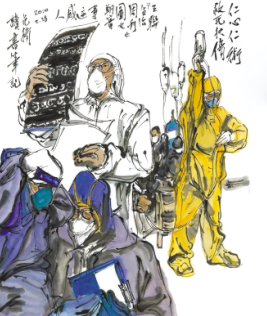 中國畫《仁心(xin)仁術,救(jiu)死扶傷(shang)》。