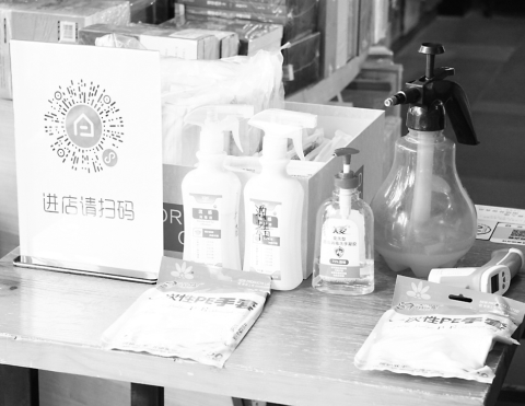 中(zhong)原圖書大(da)廈服務臺為讀者準備的掃碼處(chu)和防疫消毒(du)用(yong)品。