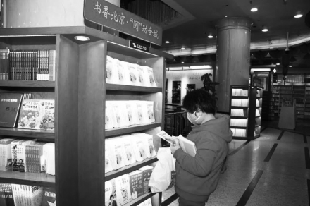 讀(du)者在王府井書(shu)店翻看抗疫知(zhi)識圖(tu)書(shu)。