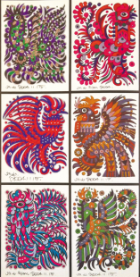 動物系(xi)列繪(hui)畫,從扎(zha)實而靈(ling)動的(de)速寫與(yu)設(she)計稿直至近(jin)似完(wan)美的(de)正式作品,都蘊含(han)了畫家(jia)捕捉(zhuo)物象的(de)執著與(yu)機敏,提煉造型的(de)睿智與(yu)不(bu)懈,有(you)了心血與(yu)摯愛的(de)投(tou)入(ru),那成竹在(zai)胸別(bie)具一格的(de)小(xiao)貓(mao)小(xiao)狗小(xiao)豬小(xiao)鵝小(xiao)猴也(ye)就躍然紙上(shang)呼之欲出(chu)了。在(zai)長方形的(de)深色(se)卡(ka)紙上(shang),那銀色(se)勾(gou)勒(le)的(de)活靈(ling)活現的(de)百(bai)魚(yu)圖(tu),讓(rang)我們沉醉于湛藍的(de)海洋世界;在(zai)四方形的(de)白色(se)鏡框中(zhong),那七彩斑斕的(de)百(bai)雞圖(tu),讓(rang)我們迷戀于鄉間的(de)濃郁風情(qing);還有(you)鞠躬盡(jin)瘁一生(sheng)奉獻(xian)膂力雄強(qiang)的(de)牛群系(xi)列,馳騁千里挾帶雄風英姿(zi)勃(bo)勃(bo)的(de)駿馬圖(tu)騰……
