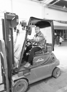 馬曉(xiao)峰駕駛叉(cha)車搬運圖書(shu)。