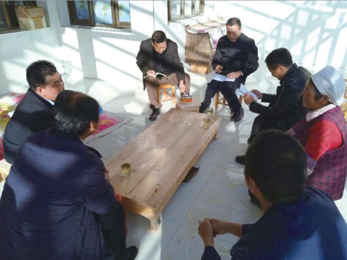 高凱、王志祥等在(zai)羊(yang)永鎮白土(tu)村二(er)社王石山保家調研(yan)安全(quan)飲水事(shi)宜。 王曉忠(zhong) 攝