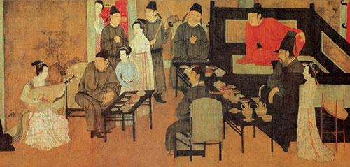 但據考證,到了(le)北宋,合餐制開始出(chu)現,最(zui)關鍵的(de)原因是(shi)北宋飲食文化(hua)的(de)商業化(hua)。食材(cai)多(duo)元(yuan)、烹飪樣式增(zeng)多(duo),極(ji)大地豐富(fu)了(le)宋代餐桌的(de)菜色,教坊酒(jiu)樓、勾欄瓦舍等公共飲食空間的(de)出(chu)現,是(shi)中國(guo)民眾飲食文化(hua)的(de)一次(ci)重要改革。