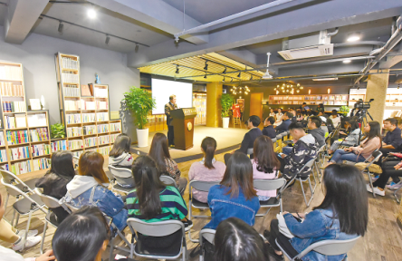 獨(du)秀書(shu)房(fang)·育才店舉辦讀書(shu)交(jiao)流(liu)活動(dong)。獨(du)秀書(shu)房(fang) 供(gong)圖(tu)