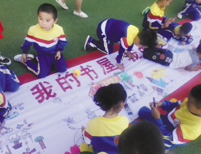 甘肅省張掖市甘州區(qu)某幼兒園的孩子們參加“我的書(shu)屋(wu)·我的夢”繪畫活動。