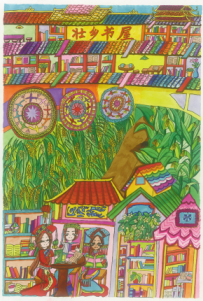 面對這(zhe)部由中(zhong)(zhong)國少年兒童新聞出版(ban)總社出版(ban)的(de)(de)(de)(de)《“我(wo)的(de)(de)(de)(de)書屋·我(wo)的(de)(de)(de)(de)夢”——2019年農村(cun)少年兒童閱讀實(shi)踐活動優秀作品集》,讓(rang)人欣喜的(de)(de)(de)(de)是(shi),它(ta)不(bu)但有文字(zi),還(huan)有很多入選的(de)(de)(de)(de)畫作,孩子(zi)們運用了大(da)膽的(de)(de)(de)(de)色彩、大(da)膽的(de)(de)(de)(de)想象(xiang)、大(da)膽的(de)(de)(de)(de)線(xian)條,恣肆地(di)(di)描繪著他(ta)(ta)們的(de)(de)(de)(de)夢和(he)憧憬,這(zhe)些夢根(gen)植(zhi)于(yu)他(ta)(ta)們生活的(de)(de)(de)(de)山鄉曠野,又呼應著遠方(fang)、星(xing)辰與大(da)海。我(wo)尤(you)其記(ji)得其中(zhong)(zhong)的(de)(de)(de)(de)一幅,那是(shi)一座高聳(song)的(de)(de)(de)(de)書塔,那種(zhong)(zhong)拔地(di)(di)而起、直上云霄(xiao)的(de)(de)(de)(de)氣勢,是(shi)一種(zhong)(zhong)象(xiang)征,是(shi)一種(zhong)(zhong)隱喻,是(shi)這(zhe)一代孩子(zi)想站到(dao)巨人肩(jian)上的(de)(de)(de)(de)渴望,是(shi)他(ta)(ta)們對祖國明天最(zui)美好的(de)(de)(de)(de)祝福和(he)期待,也是(shi)中(zhong)(zhong)華民族必將走向(xiang)復(fu)興的(de)(de)(de)(de)昭示。