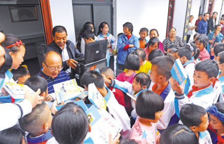 作(zuo)家(jia)深入湖北谷城縣廟灘鎮(zhen)黃畈村農家(jia)書屋開展圖(tu)書簽贈導讀活動(dong)。