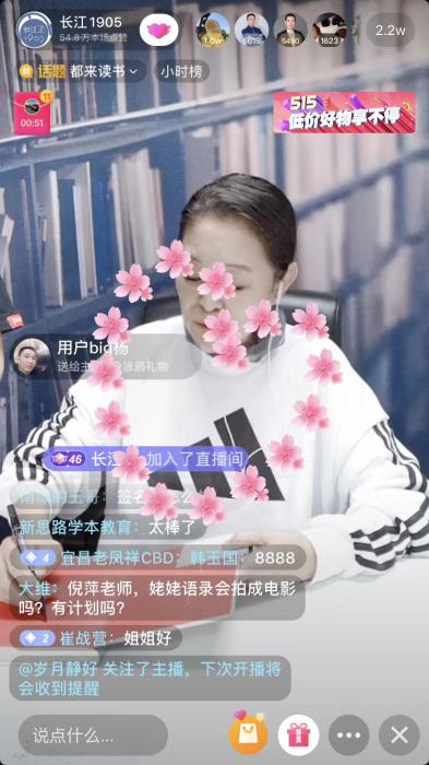 在本(ben)次直播中,倪萍與湖北新(xin)華書店(dian)、北京西單圖(tu)書大廈、四川(chuan)文軒、山(shan)東臨沂書城、江蘇鳳凰新(xin)華書店(dian)五家書店(dian)連線,還聯合線上主播為(wei)讀者推薦好(hao)書、推薦書店(dian),圈粉(fen)無數(shu)。