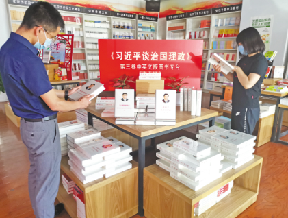 月(yue)30日,《習(xi)近平談(tan)治國(guo)理(li)政(zheng)》第三卷中英文版(ban)在(zai)全國(guo)各(ge)大書店開(kai)始銷(xiao)售。圖為讀者(zhe)在(zai)北京中關(guan)村圖書大廈選購圖書。