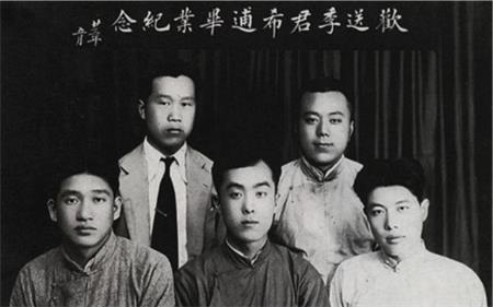 1934年,季羨林(中)大學畢(bi)業(ye)前與同學合(he)影。資料圖(tu)