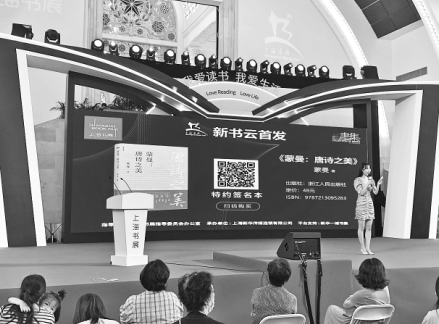 2020上海(hai)書展(zhan)首次(ci)啟用了新書“云首發(fa)(fa)”的形式。8月(yue)15日(ri),在(zai)《蒙曼:唐詩之美(mei)》新書“云首發(fa)(fa)”現場,讀者可以掃描大屏(ping)幕上的二維碼進行圖書購買。