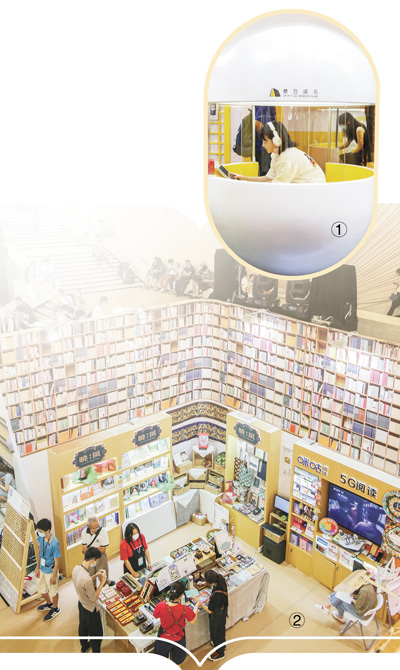 圖①:讀者在上海書展現場體驗“未來自習室”。