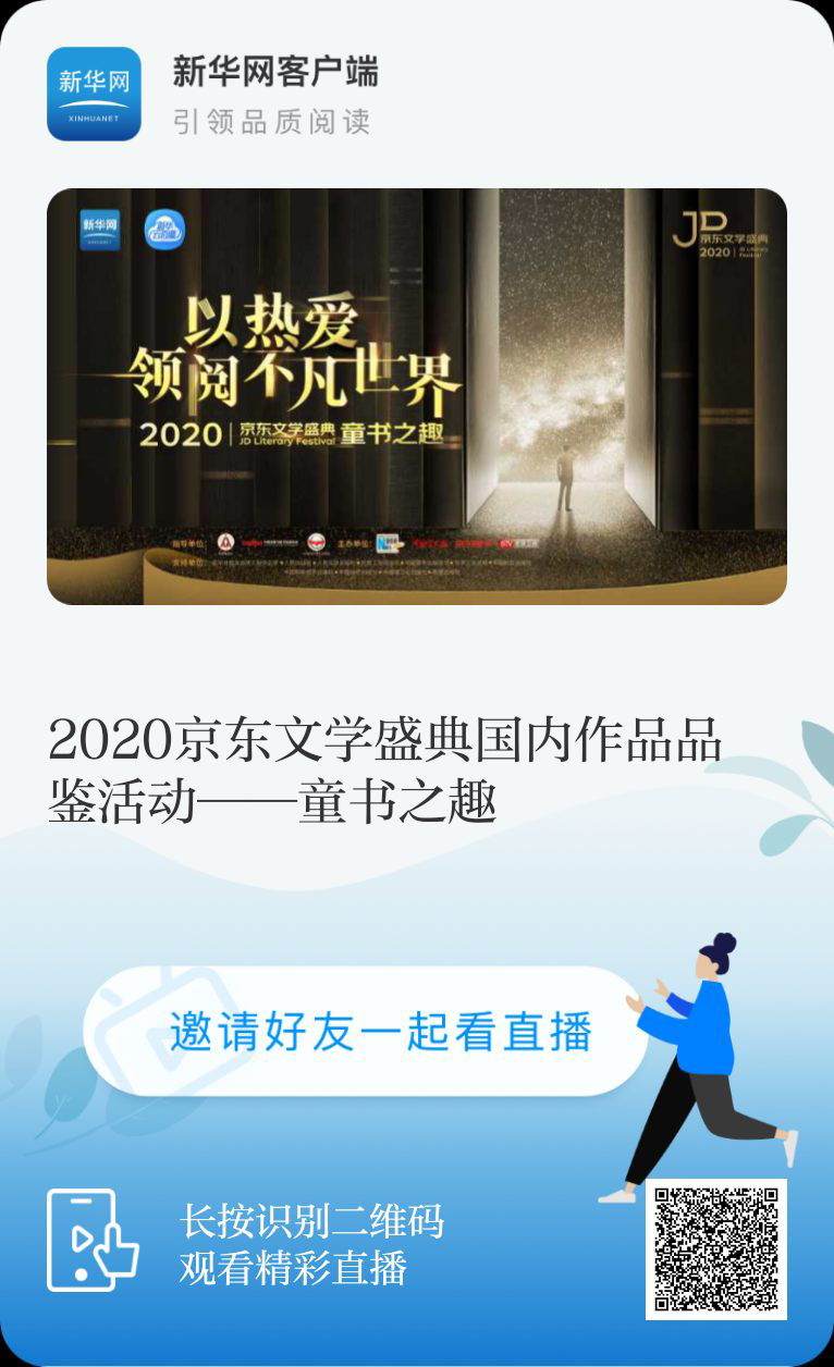 2020京(jing)東文(wen)(wen)學(xue)盛(sheng)典由新華(hua)網、中國藝術報社、京(jing)東圖書、北京(jing)衛視聯合主(zhu)辦,通過(guo)專業、權威的(de)(de)推(tui)介(jie)形式,搭建(jian)起讀者和(he)作(zuo)者交流的(de)(de)平臺,通過(guo)專家推(tui)薦(jian)和(he)大眾參(can)與(yu)相結合的(de)(de)方式,讓讀者領略文(wen)(wen)學(xue)閱(yue)讀的(de)(de)美好。活動8月31日開啟,經過(guo)第(di)一階段面(mian)向社會各界人士(shi)廣泛征集,以及第(di)二階段全(quan)民薦(jian)書環節,在國內文(wen)(wen)學(xue)、國際文(wen)(wen)學(xue)、兒童(tong)文(wen)(wen)學(xue)、科幻文(wen)(wen)學(xue)、文(wen)(wen)學(xue)IP五大組(zu)別圖書中,兒童(tong)文(wen)(wen)學(xue)組(zu)最(zui)終產生了(le)14本推(tui)薦(jian)圖書。