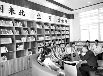 南安市石井鎮蘇內村書屋內,閱讀點評活動吸引學生。