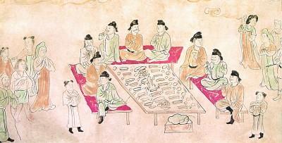 郊野聚飲圖 選(xuan)自陜西旅(lv)游(you)出版社1996年出版的《大唐壁畫》